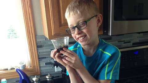 Jason with his bean plant